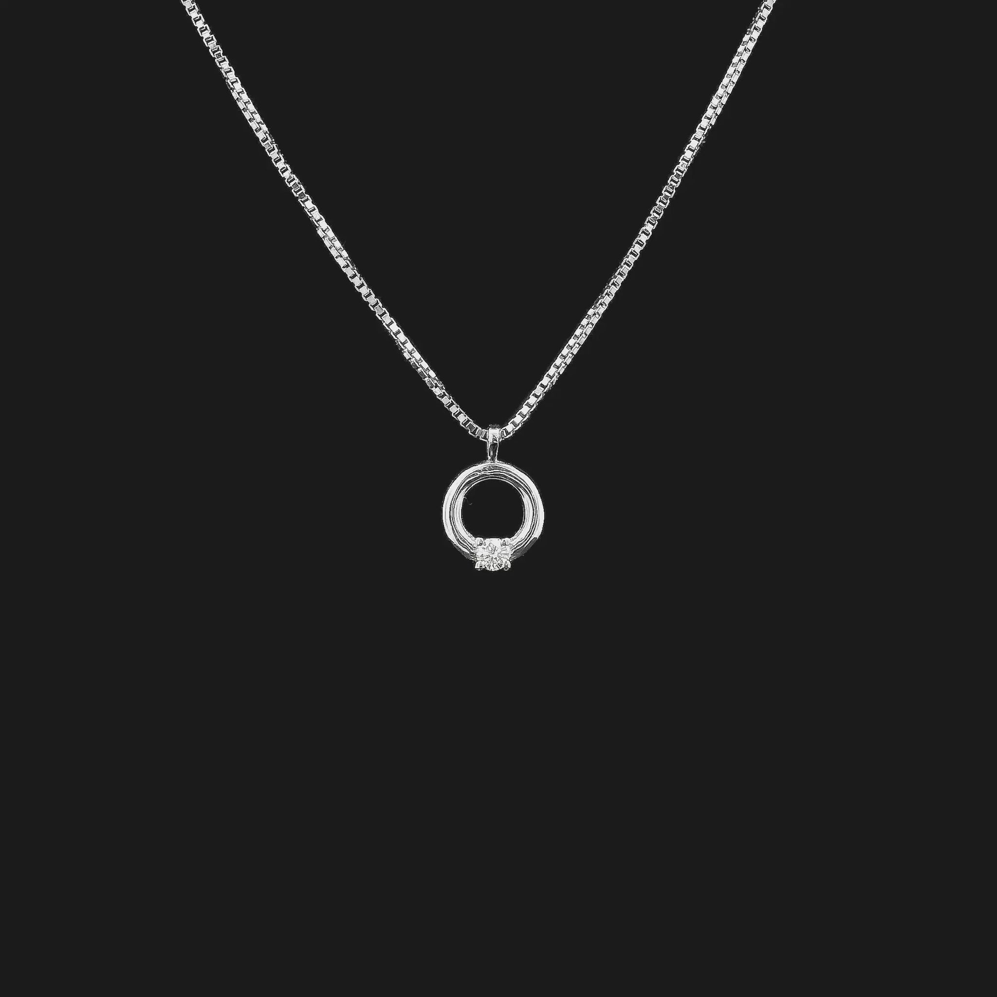 Elegantna verižica iz belega zlata z obeskom, ki ima vkovan diamant je popolna izbira za vse, ki cenijo nežnost, simboliko in brezčasen sijaj. Obesek krasi briljantno brušen diamant, ki ob vsakem gibu čudovito ujame svetlobo in ustvarjajo prefinjen lesk.