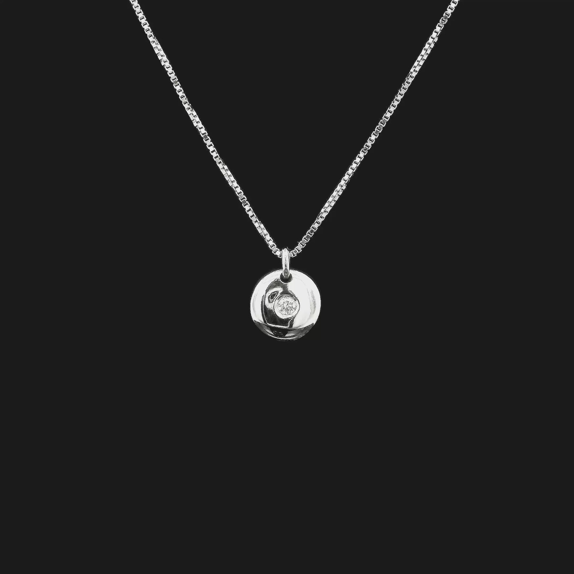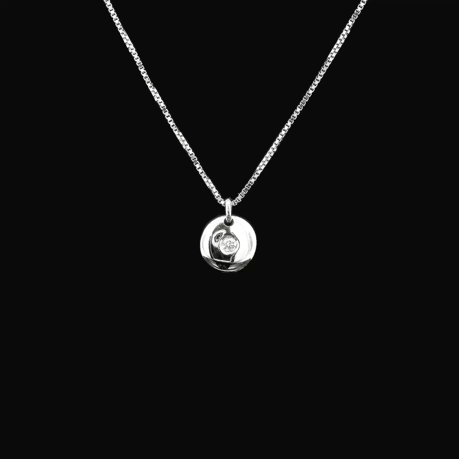 Elegantna verižica iz belega zlata z obeskom, ki ima vkovan diamant je popolna izbira za vse, ki cenijo nežnost, simboliko in brezčasen sijaj. Obesek krasi briljantno brušen diamant, ki ob vsakem gibu čudovito ujame svetlobo in ustvarjajo prefinjen lesk.