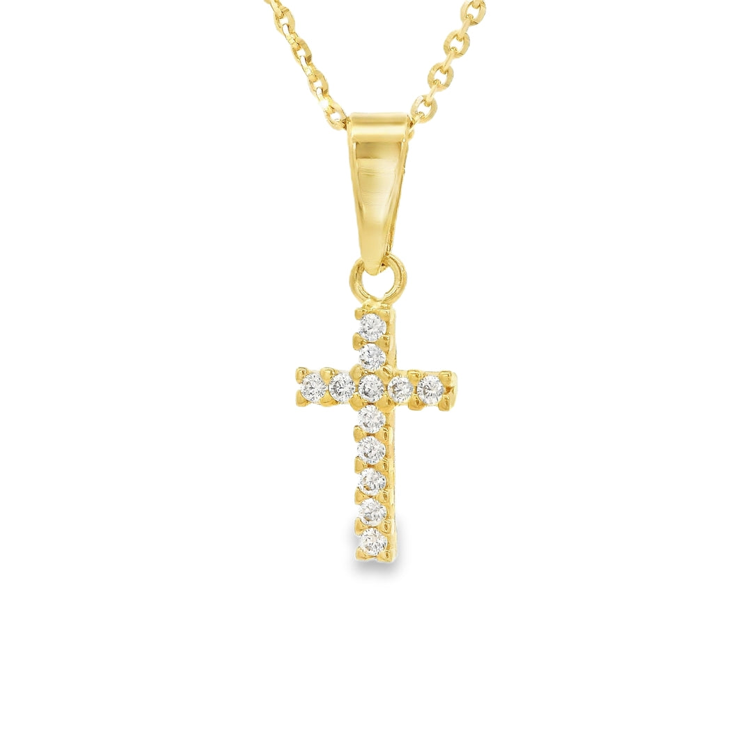 Dodajte svoji verižici pridih glamurja s čudovitim obeskom iz rumenega zlata, okrašenim z natančno brušenimi cirkoni. Ta brezčasni kos nakita združuje toplino 14-karatnega zlata in svetlikajoč se sijaj cirkonov, ki ujamejo svetlobo ob vsakem gibu.