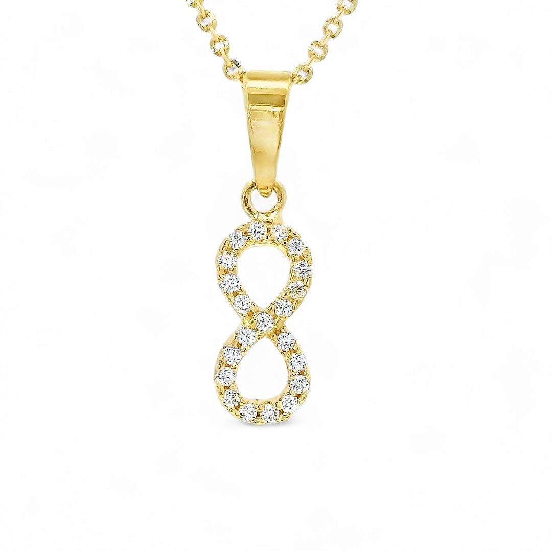 Dodajte svoji verižici pridih glamurja s čudovitim obeskom iz rumenega zlata, okrašenim z natančno brušenimi cirkoni. Ta brezčasni kos nakita združuje toplino 14-karatnega zlata in svetlikajoč se sijaj cirkonov, ki ujamejo svetlobo ob vsakem gibu.