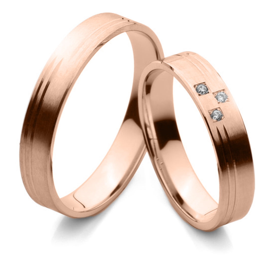 Poročni prstani iz rdečega zlata s cirkoni ali diamanti so prava izbira za pare, ki želijo združiti klasično lepoto z modernim sijajem. Prstane iz rdečega zlata obogati prisotnost cirkonov ali diamantov, ki prstanom dodajo pridih prestiža in elegance. Cirkoni in diamanti v različnih postavitvah ustvarijo edinstven in očarljiv dizajn, ki poudari vašo ljubezen in posebnost tega nepozabnega trenutka.