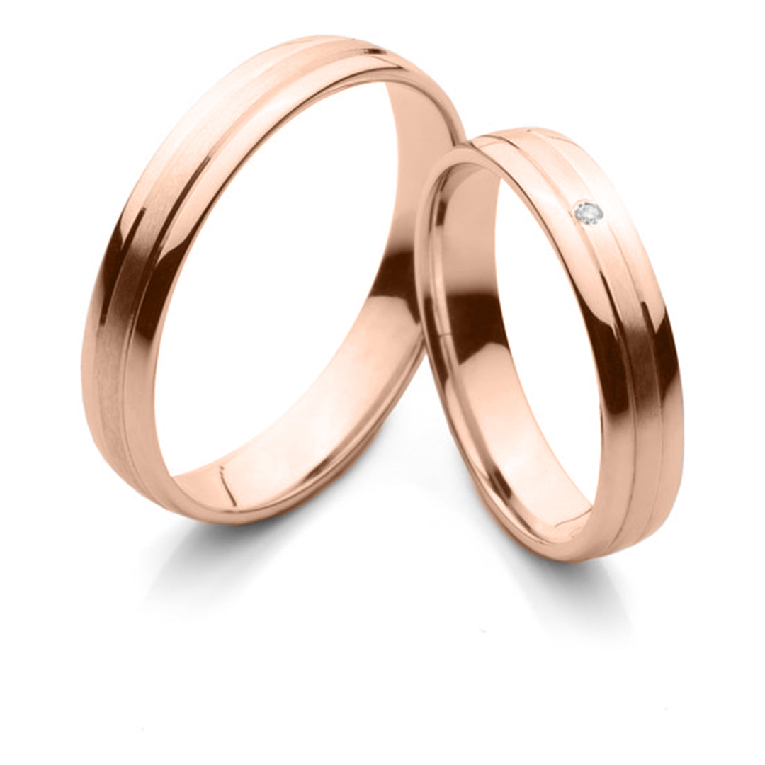 Poročni prstani iz rdečega zlata s cirkoni ali diamanti so prava izbira za pare, ki želijo združiti klasično lepoto z modernim sijajem. Prstane iz rdečega zlata obogati prisotnost cirkonov ali diamantov, ki prstanom dodajo pridih prestiža in elegance. Cirkoni in diamanti v različnih postavitvah ustvarijo edinstven in očarljiv dizajn, ki poudari vašo ljubezen in posebnost tega nepozabnega trenutka.