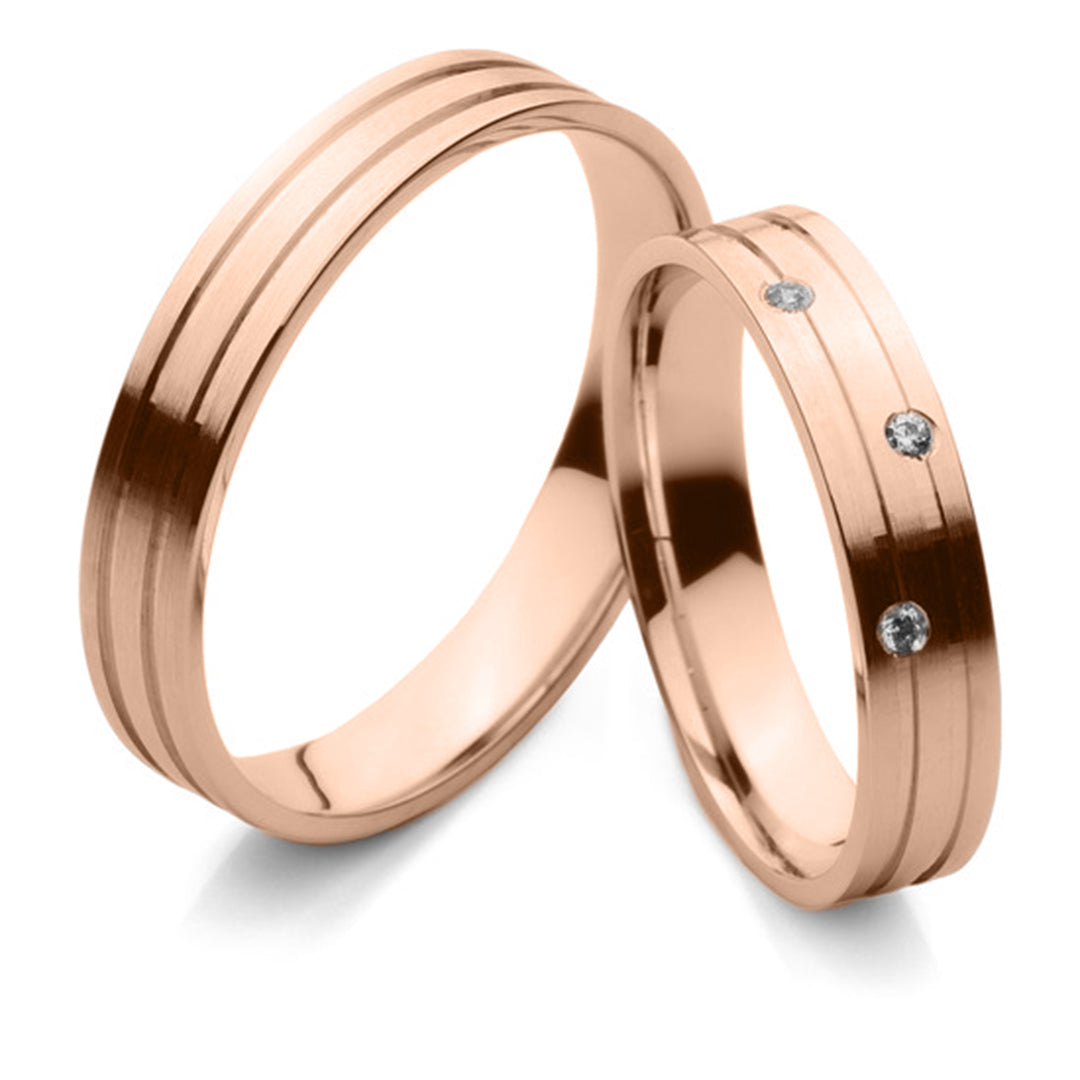 Poročni prstani iz rdečega zlata s cirkoni ali diamanti so prava izbira za pare, ki želijo združiti klasično lepoto z modernim sijajem. Prstane iz rdečega zlata obogati prisotnost cirkonov ali diamantov, ki prstanom dodajo pridih prestiža in elegance. Cirkoni in diamanti v različnih postavitvah ustvarijo edinstven in očarljiv dizajn, ki poudari vašo ljubezen in posebnost tega nepozabnega trenutka.