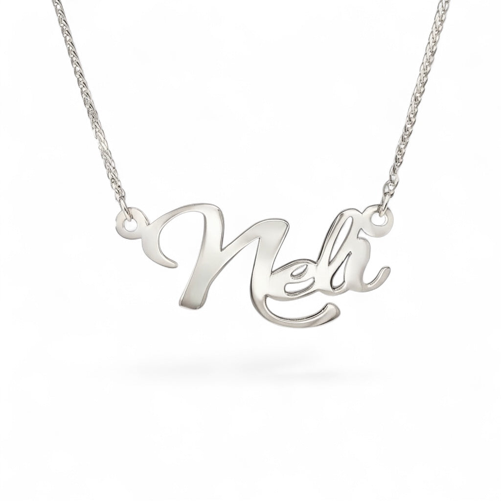 Elegantna verižica z imenom iz srebra je brezčasen kos nakita, ki združuje osebni pomen in prestižen videz. Izdelana je iz kakovostnega srebra ter natančno oblikovana po vašem imenu ali izbranem napisu.